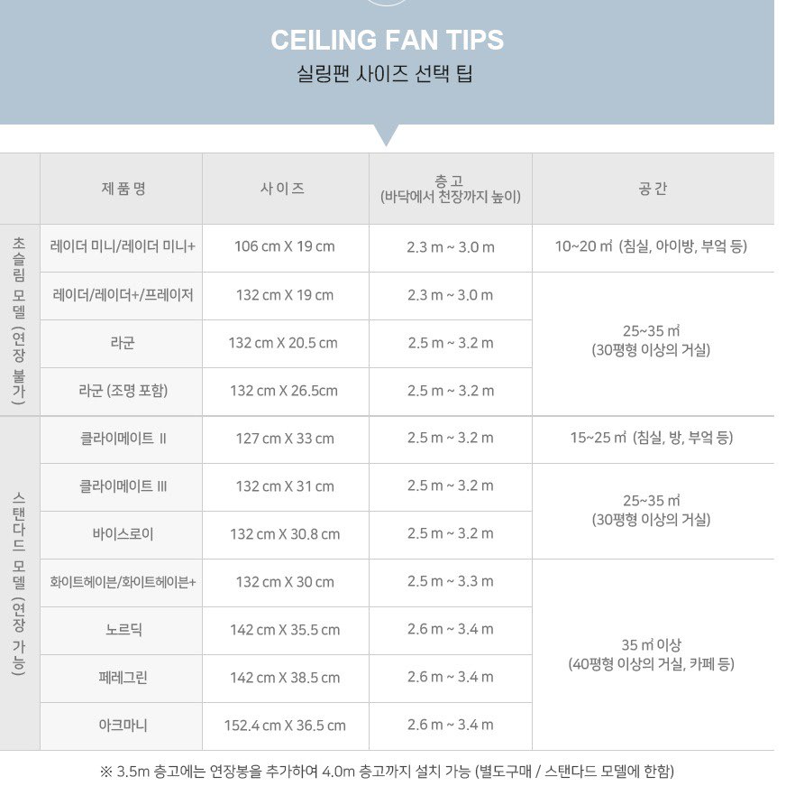 설치 당시에도 루씨에어 실링팬이 많이 선호되고 있었는데, 그 중 레이더 모델이 단연 많이 보였다. 아마 길이가 짧아 낮은 층고에도 부담없이 설치가 가능해서 그런것 같다.