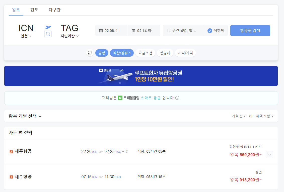 어차피 인천에서 출발하는 직항은 제주에어 뿐이라, 특별히 비교할 곳도 없었고 제주에어 공홈 및 네이버 검색 시 나오는 최저가를 통해 인터파크에서 구매했습니다.