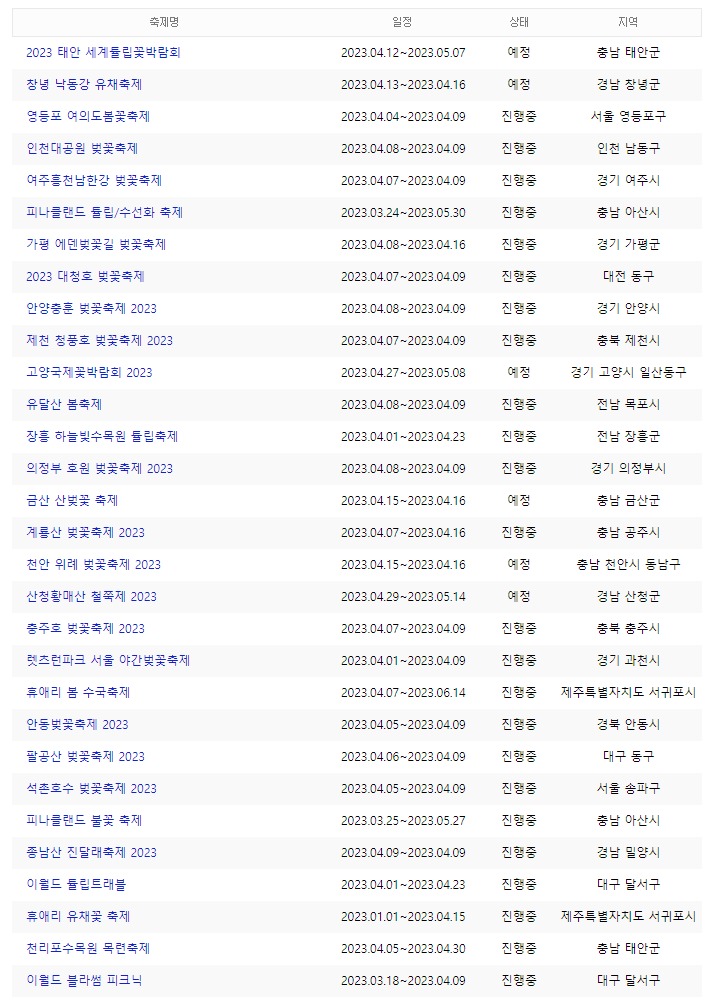 계획이 아직이신 분들은 서둘러 일정 정보 참고하셔서 완연한 봄날 만끽하시길 바랍니다.