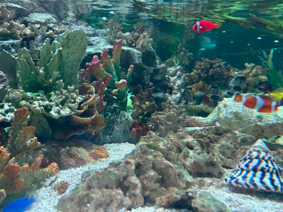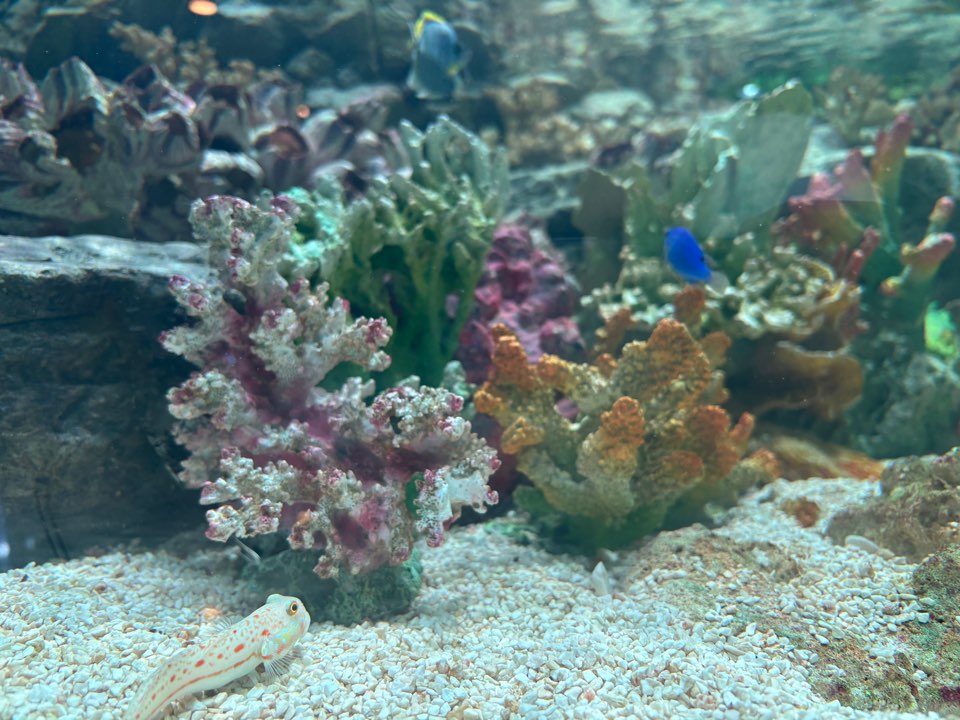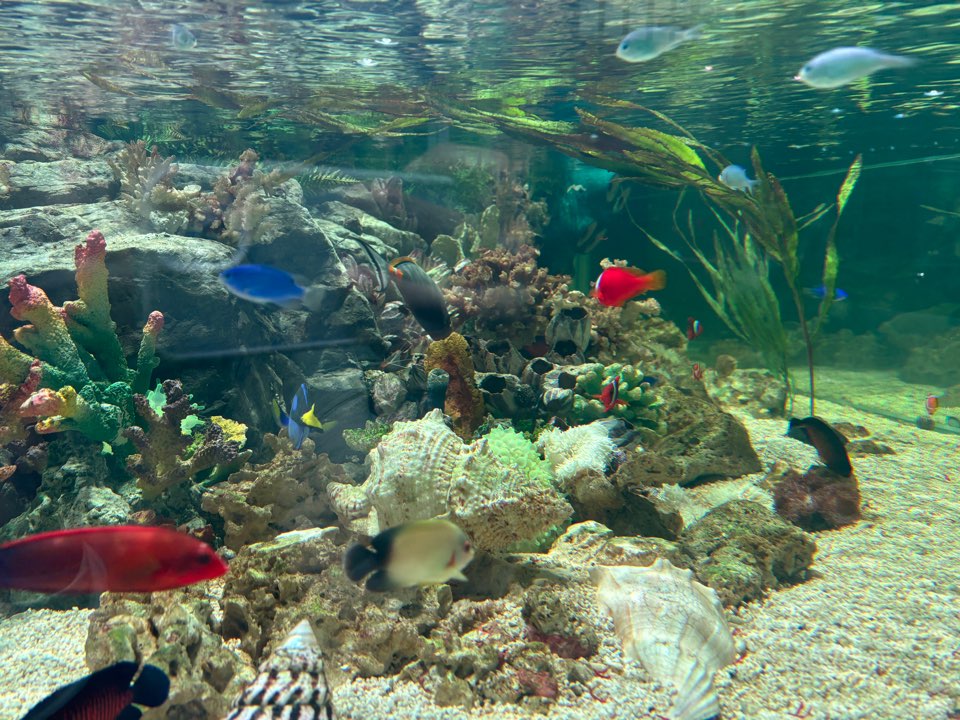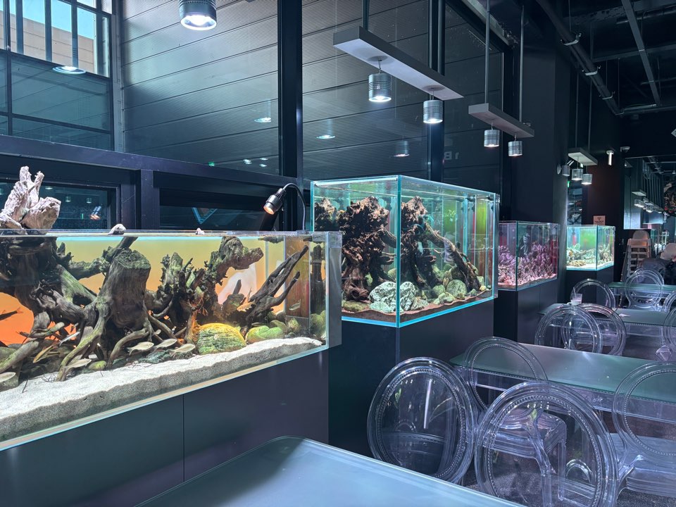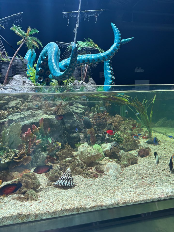 주문한 음식을 받으면 엘리베이터를 이용하여, 2층 또는 3층으로 이동해 자유롭게 자리를 잡고 물고기들을 구경할 수 있어요. 정말 다양한 생물들이 있어서 시간가는 줄 모르고 있었습니다.
