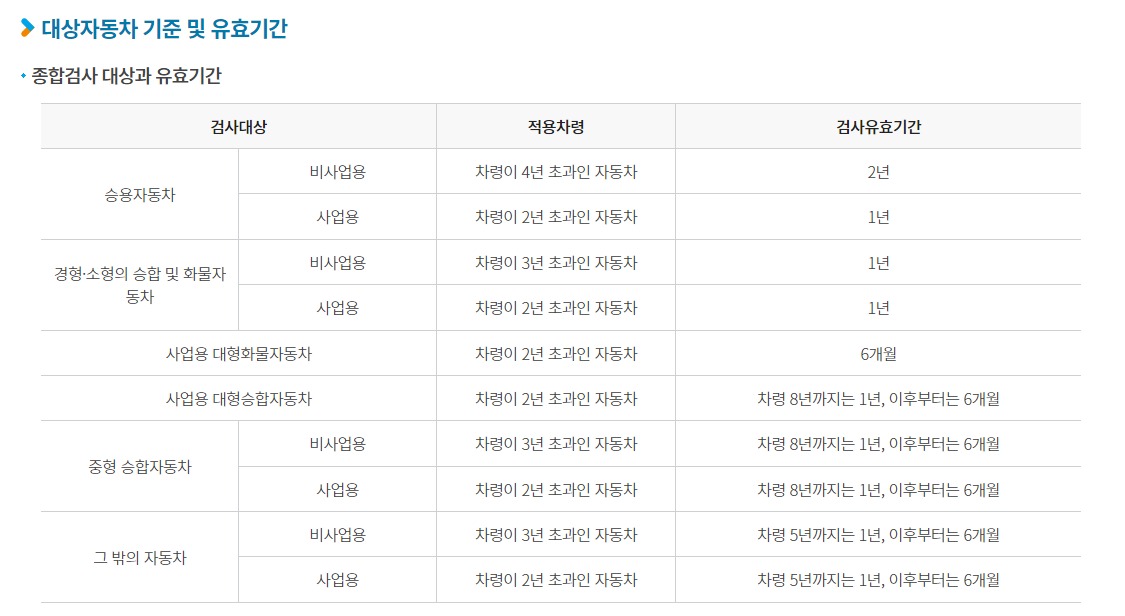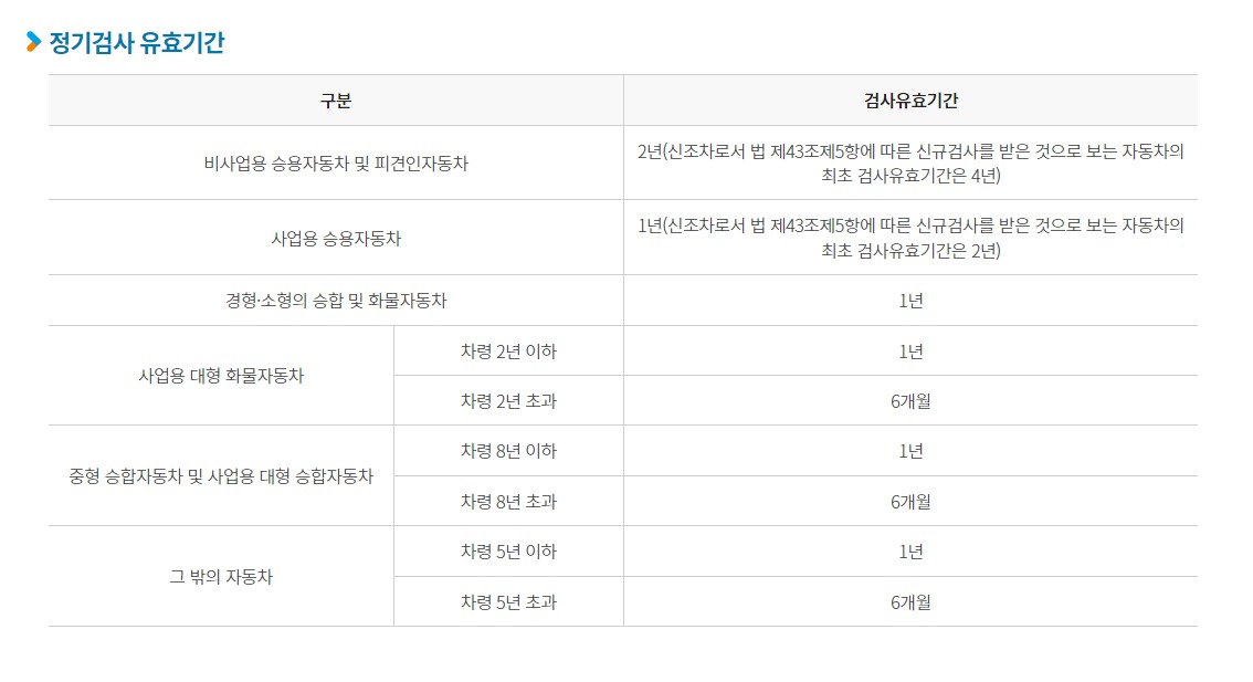 정기검사 : 차량 신규 등록 후 일정 기간 정기적으로 실시하는 자동차 검사