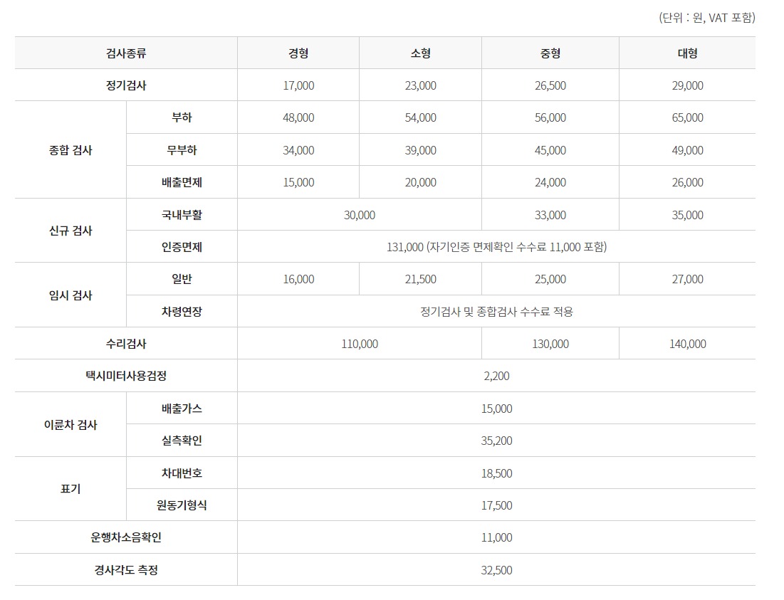 근처 민간자동차검사소에서 종합검사 54,000원보다 조금 더 비싼 60,000원에 검사 받았으며, 업체 마다 다를 수 있으니 이용 전 확인하시길 바랍니다.