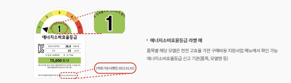 '품목'과 '에너지소비효율 등급' 모두 해당되어야 해요.