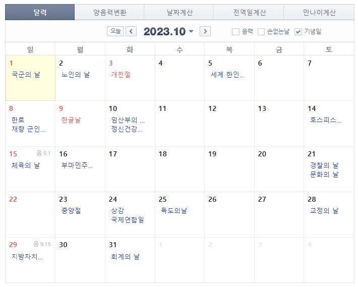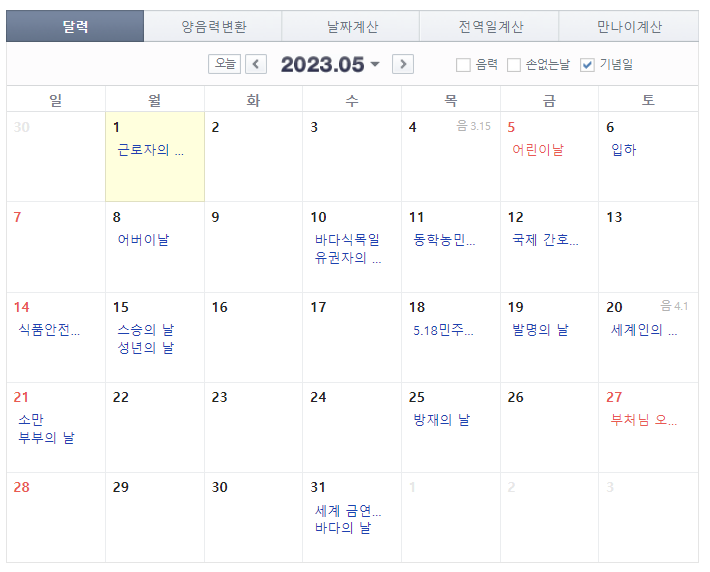 미리 확인해서 여행 계획이나 기타 일정 챙겨봅시다!